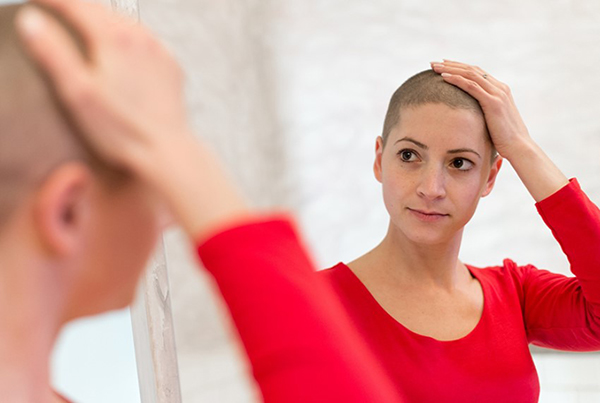 Phụ nữ đang trong quá trình điều trị ung thư bằng hóa chất hoặc xạ trị thường gặp rụng tóc toàn bộ hoặc từng vùng. Nguyên nhân là do thuốc hóa trị tác động lên các tế bào đang phân chia nhanh, bao gồm cả nang tóc. Tóc thường rụng nhanh, nhiều, và thưa dần trong vài tuần điều trị.