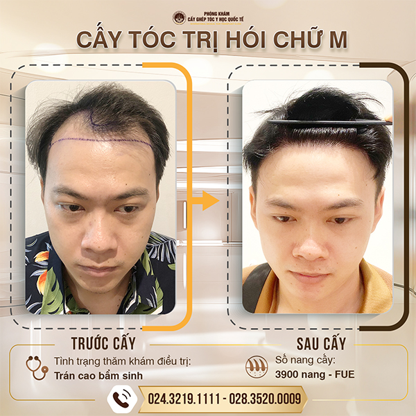 Đường chân tóc quyết định đến 70% thẩm mỹ khuôn mặt. Đặc biệt là những người hói trán, hói chữ M, đường chân tóc cao.