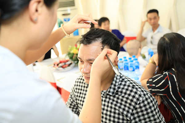 Bác sĩ và các kỹ thuật viên sẽ phối hợp để đưa từng nang tóc vào vùng cần phục hồi. Quá trình cấy: