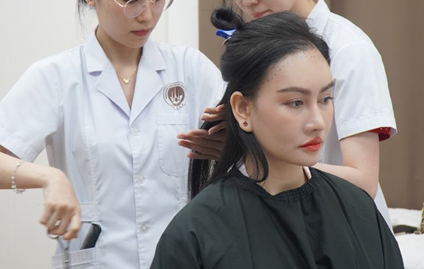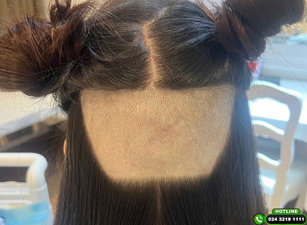 – Với nữ: Cấy tóc ngắn thường không cần cạo toàn bộ da đầu. Trong đa số trường hợp, bác sĩ chỉ cạo xung quanh vùng lấy tóc sau gáy và một phần nhỏ vùng cấy. Tóc xung quanh vẫn được giữ nguyên để che phủ, hạn chế tối đa lộ vùng cấy và không ảnh hưởng đến ngoại hình.