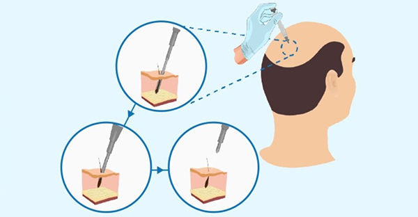 – Cấy nang tóc: Sử dụng bút tạo lỗ 1.2mm và cấy vào vùng hói.