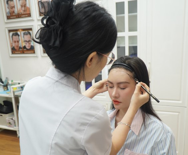 Bác sĩ định hình vùng trán, vị trí đường chân tóc để tạo sự hài hòa cho gương mặt. Đồng thời, mật độ tóc cũng được tính toán để đảm bảo độ che phủ tự nhiên. Đây là bước quan trọng quyết định đến 70% hiệu quả thẩm mỹ cuối cùng.