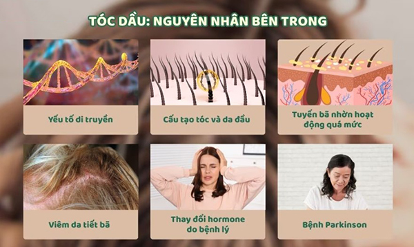 – Do di truyền, nếu trong gia đình có người mắc tình trạng da đầu nhờn, bết dầu thì khả năng cao bạn cũng được thừa hưởng gen này.