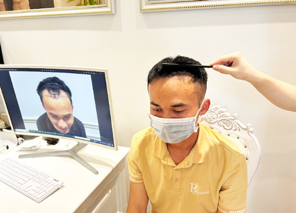 Chính vì vậy, tôi không vội làm ngay mà đi tư vấn ở vài nơi khác nhau. Mãi khi đến Phòng khám Cấy ghép tóc Y học Quốc tế, tôi mới có cảm giác yên tâm. Bác sĩ soi da đầu rất kỹ, giải thích vì sao tóc bị rụng tóc (của tôi chủ yếu là do di truyền).