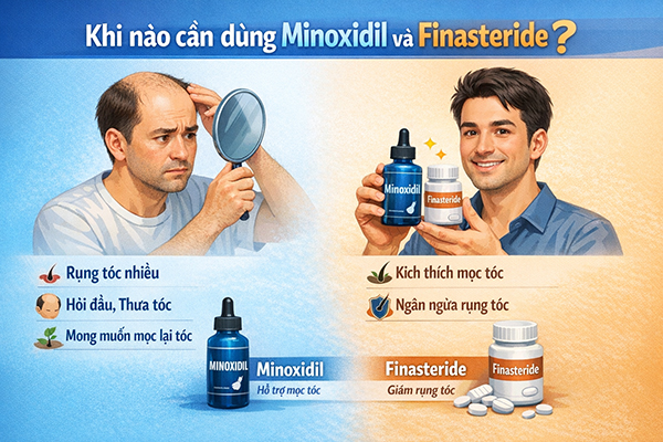 Minoxidil và Finasteride 2 loại thuốc được biết đến với công dụng điều trị rụng tóc nhẹ. Tuy nhiên, việc dùng thuốc đúng lúc, đúng cách là điều quan trọng để đạt hiệu quả tối ưu. Vậy khi nào cần dùng Minoxidil và Finasteride? Cùng tìm hiểu trong bài viết sau.